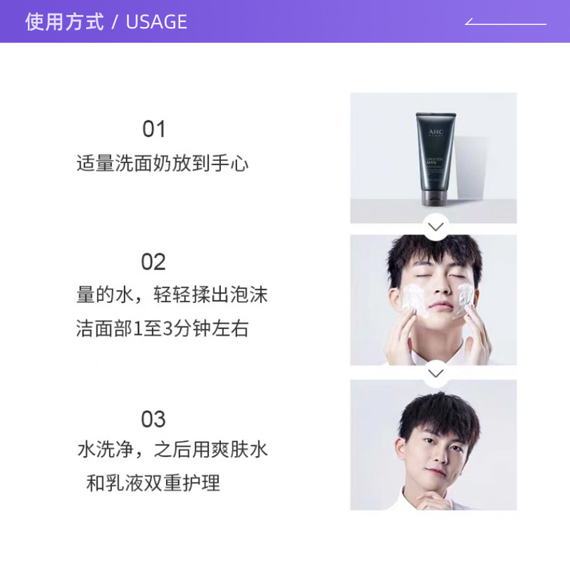 洗面奶男士 专用控油去黑头祛痘氨基酸清爽清洁面乳官方旗舰店正品