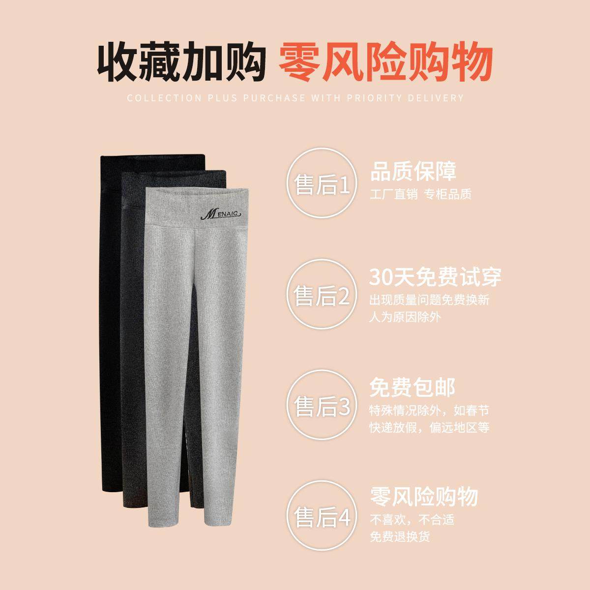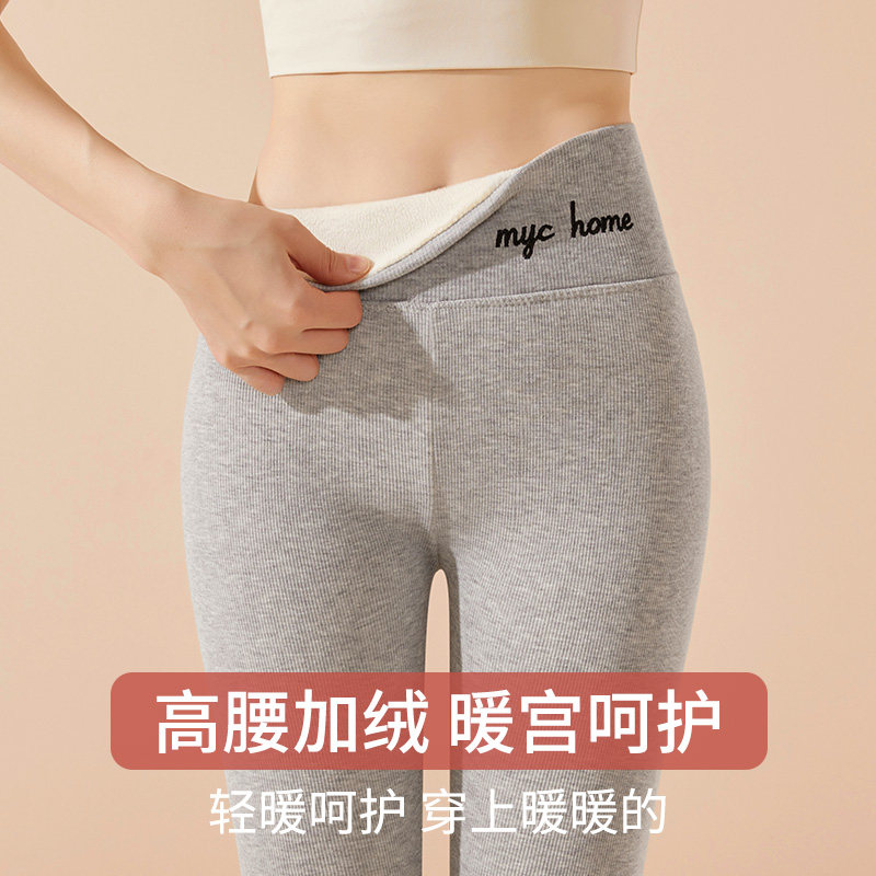 紧身内穿秋裤 高腰加绒加厚保暖棉毛裤 女外穿秋冬季 灰色竖纹打底裤