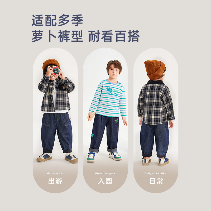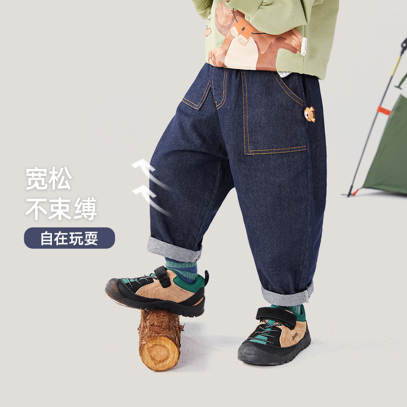 防褪色抗菌 儿童加绒裤 男童软牛仔裤 宝宝哈伦裤 子 秋冬男孩休闲裤