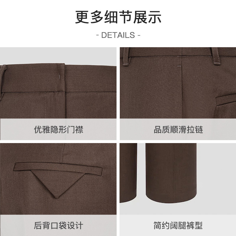 女士休闲职场美拉德栗色wide舒适阔腿长裤 含绵羊毛 BEANPOLE滨波