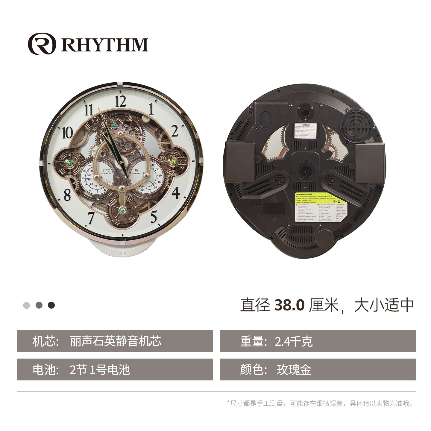 RHYTHM丽声报时大挂钟客厅家用2026新款 创意静音挂表挂墙 轻奢时尚