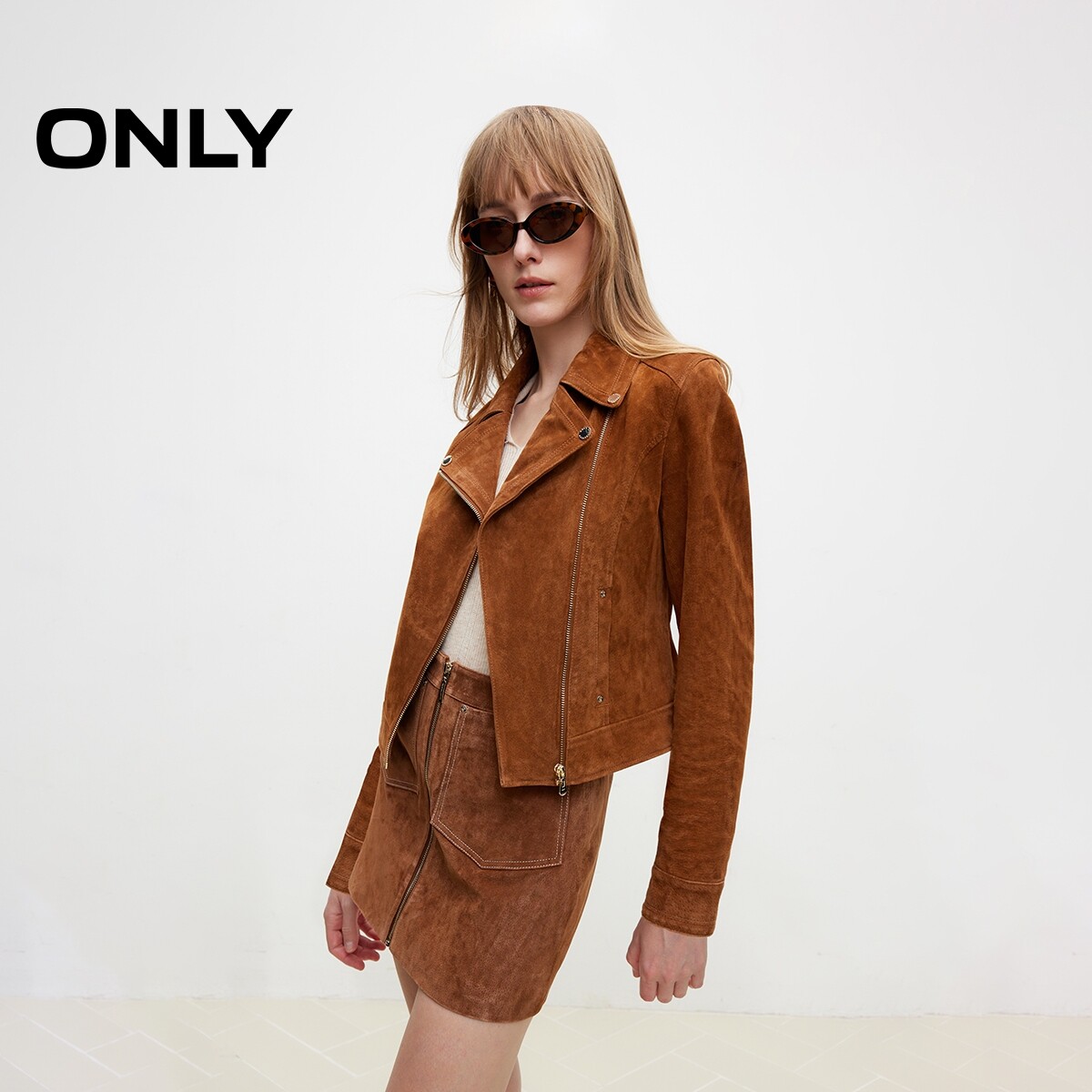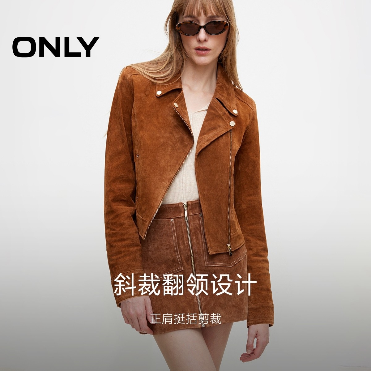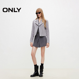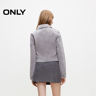 新款 春季 时髦机车风修身 翻领长袖 皮衣女 短款 ONLY奥莱