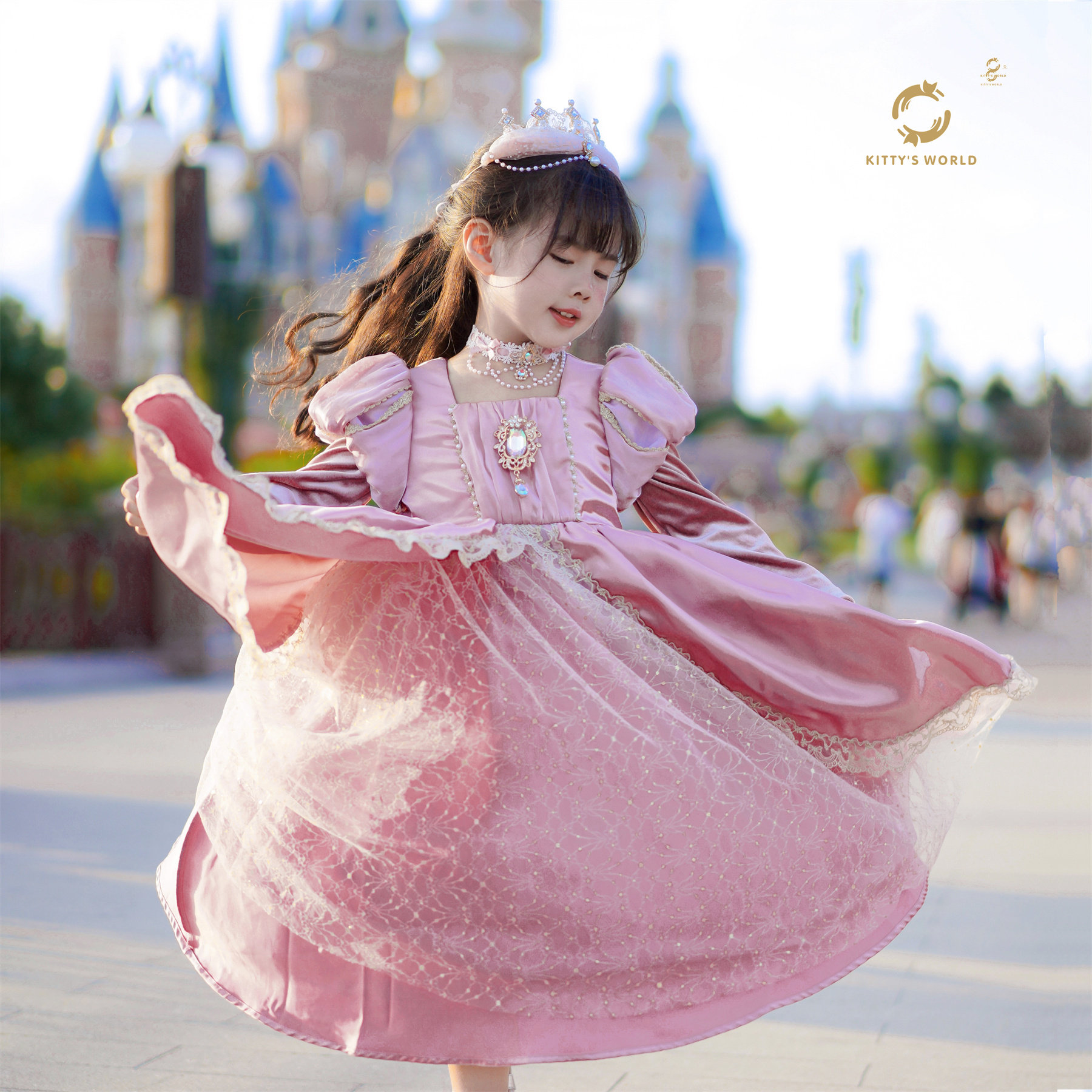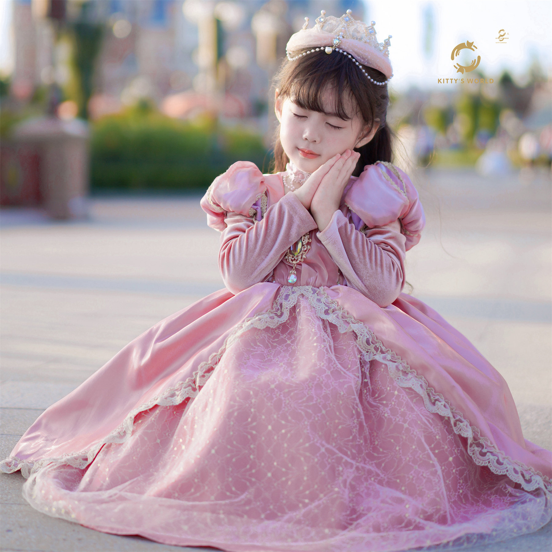 kw家女童粉色美人鱼丝绒公主裙儿童礼服长裙25春夏爱丽儿公主裙