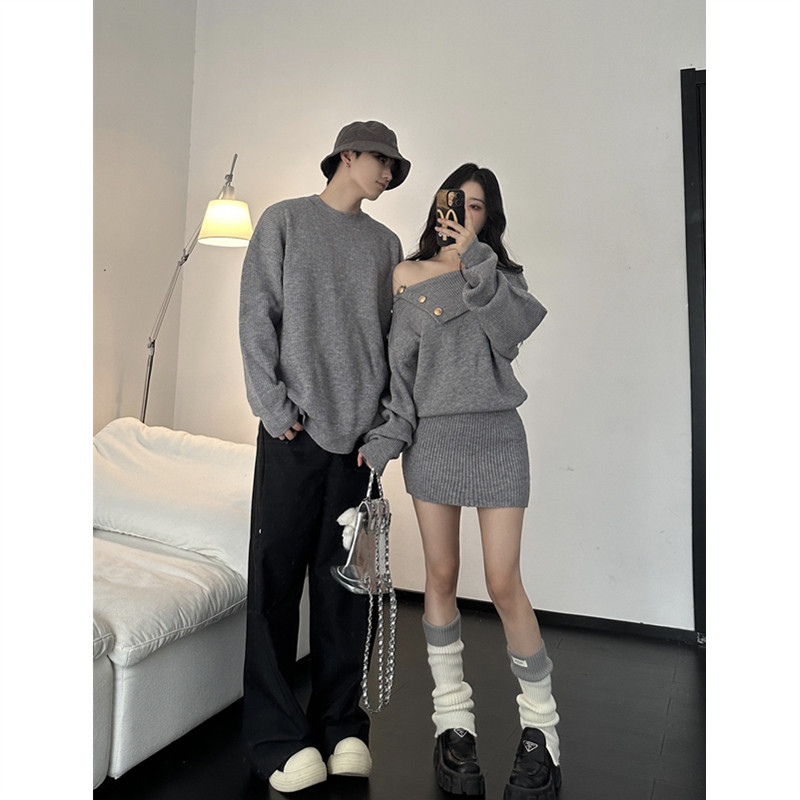针织衫 情侣装 法式 ins超火毛衣连衣裙一男一女韩版 潮 秋冬2025新款