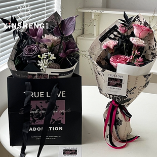芯苼 资材 原创玫瑰诗集手提袋鲜花花束礼品盒手工花艺diy礼物包装