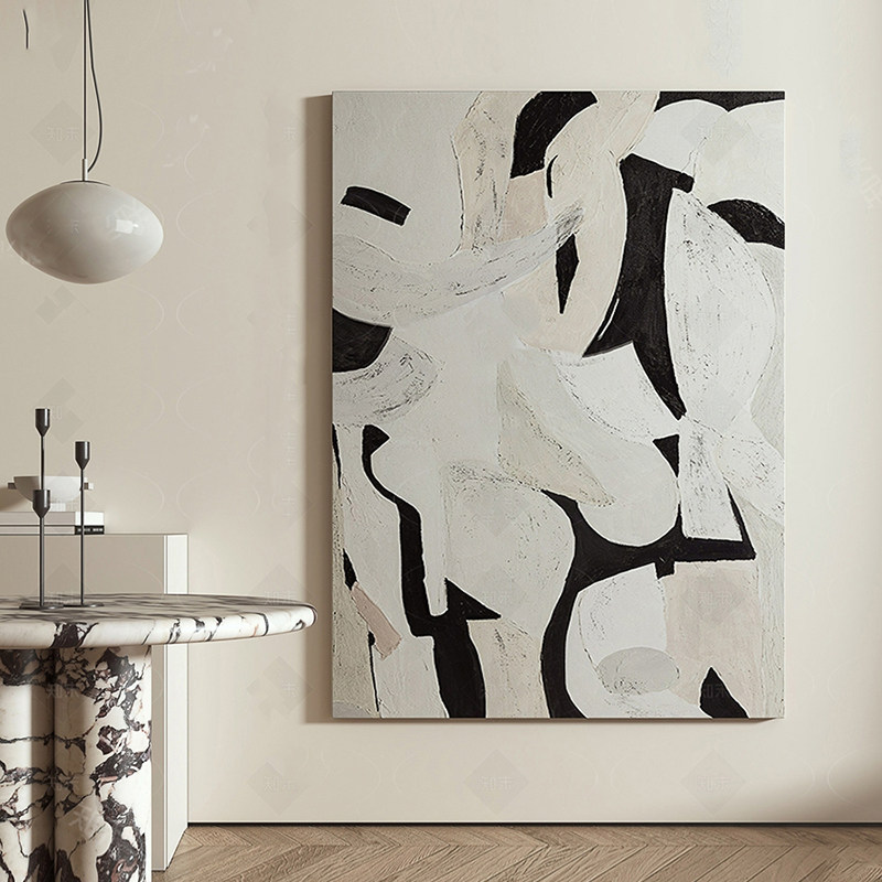 抽象手绘油画客厅靠墙玄关走廊装 饰画侘寂风黑白立体壁画酒店挂画