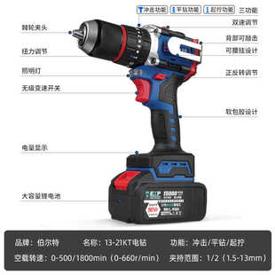 日本锂电池大亿无刷手电钻充电大功率工艺冲击电钻家用电动螺丝刀