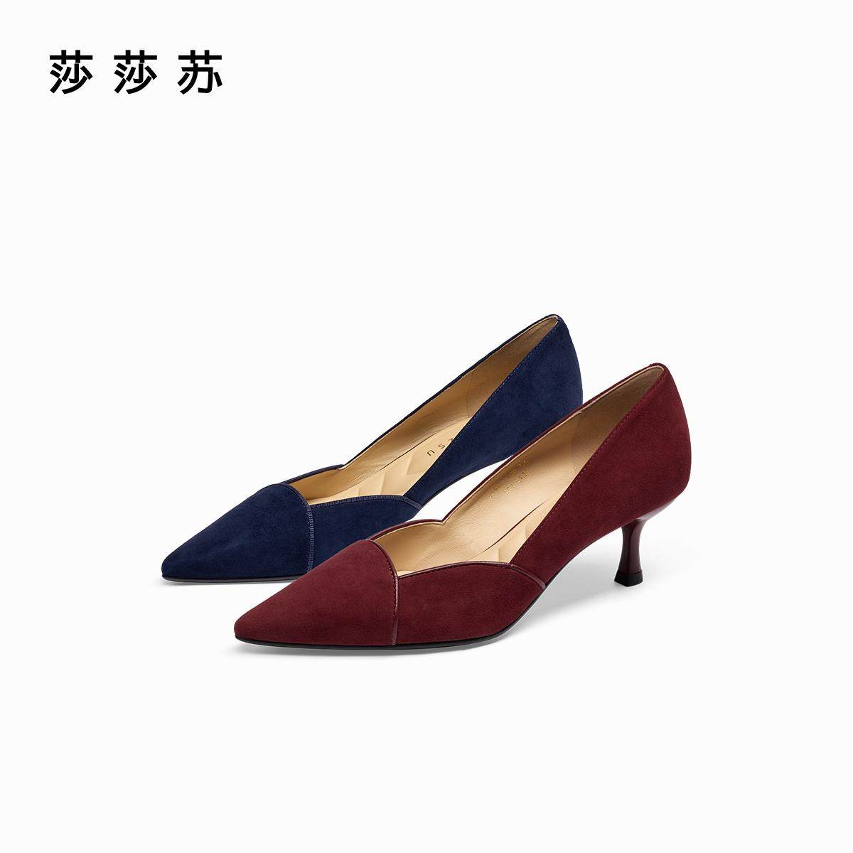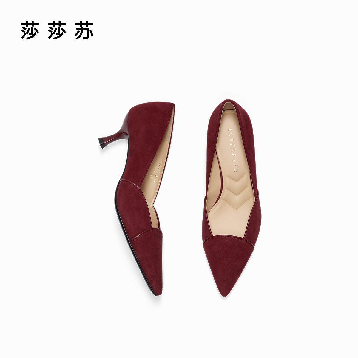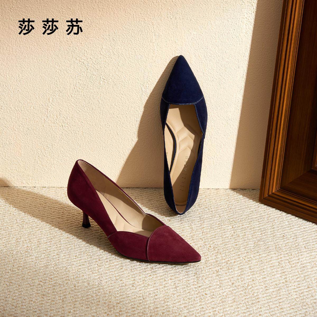 红色婚鞋 羊皮绒面尖头高跟女单鞋 莎莎苏2025春新款 宴会鞋 戴安娜