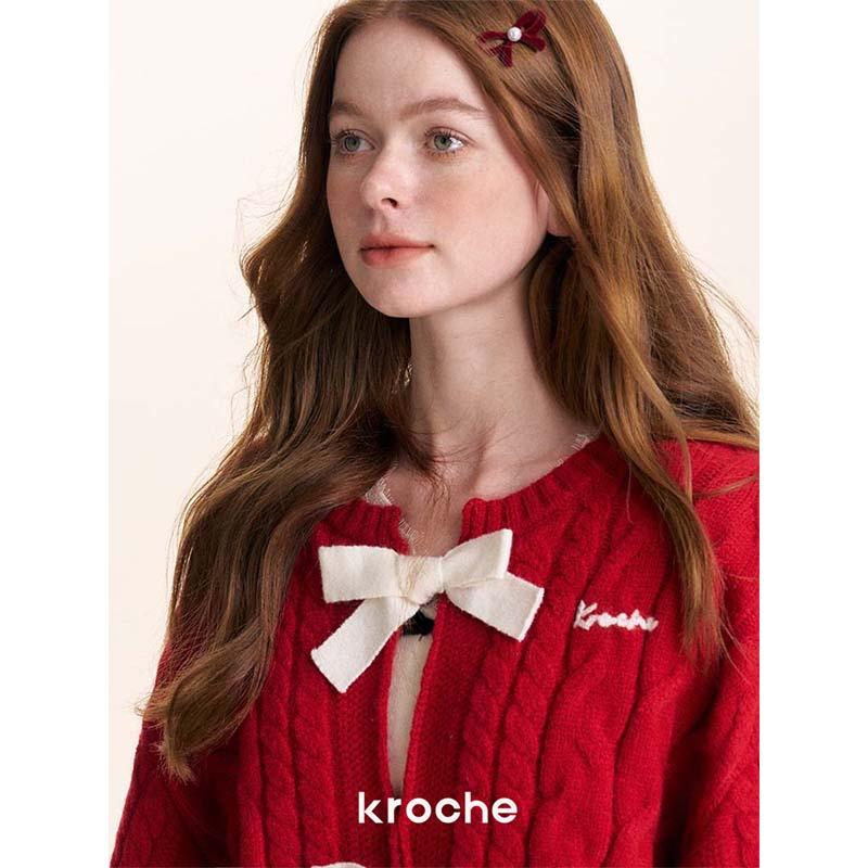 本命年毛衣 立体蝴蝶结绞花灯笼泡泡袖 赵今麦卢昱晓同款 Kroche