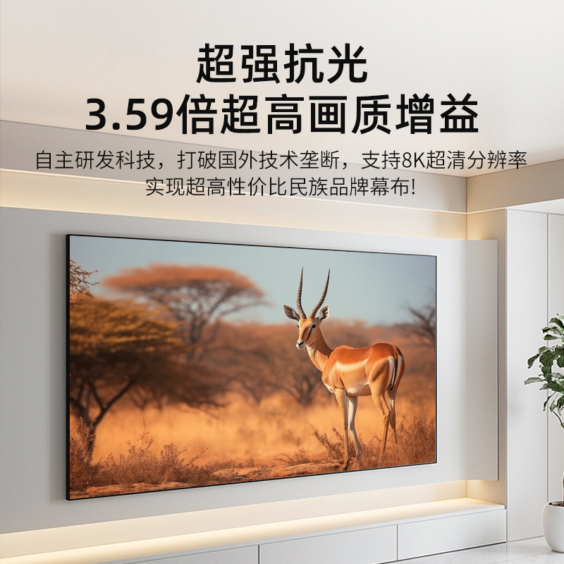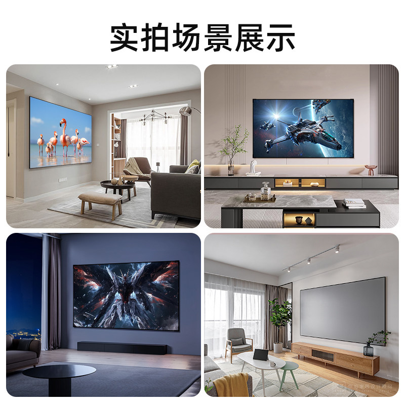 120寸客厅壁挂画框幕 8K超高清家庭影院一体幕100 大徽投影仪幕布纳米家用三色菲涅尔抗光幕超窄边硬屏3D