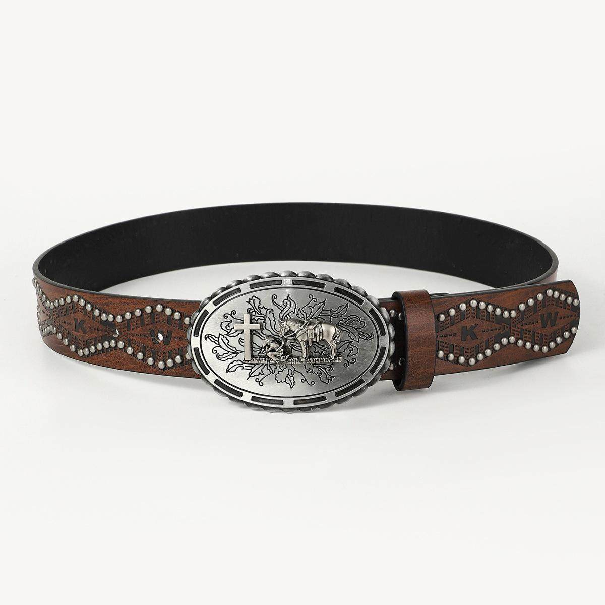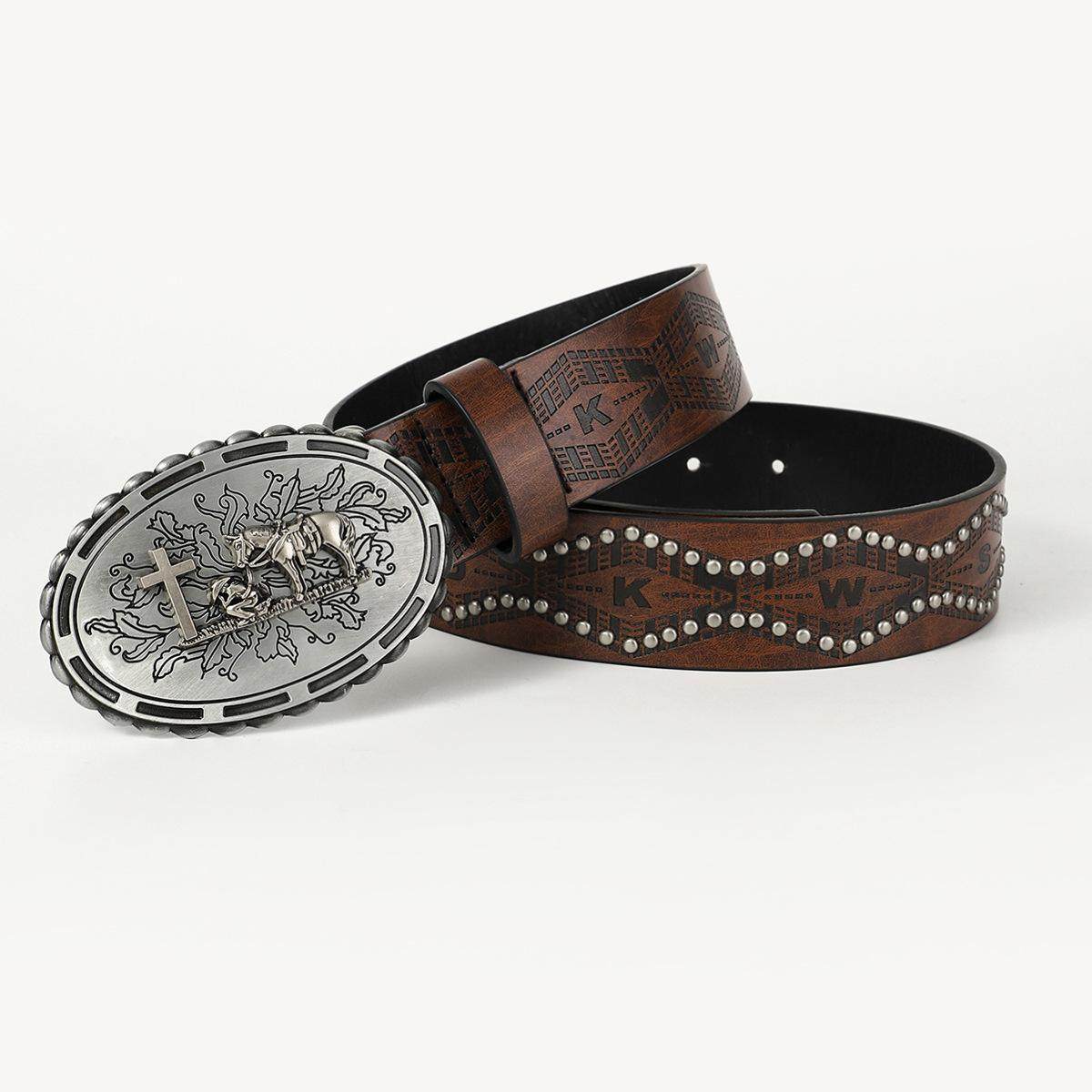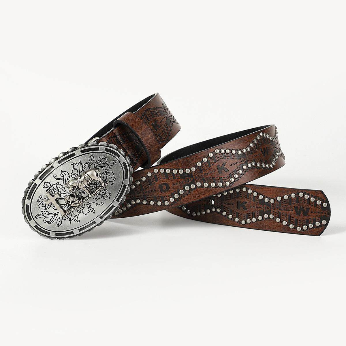 装 十字架个性 时尚 带西部牛仔腰带复古棕色皮带男女款 饰腰带 铆钉裤