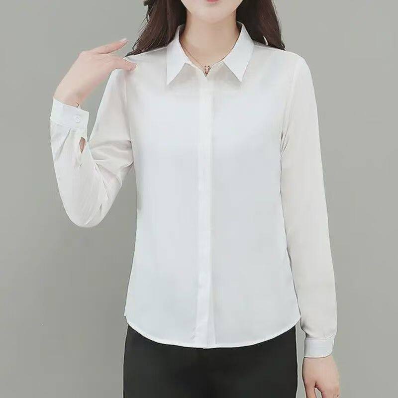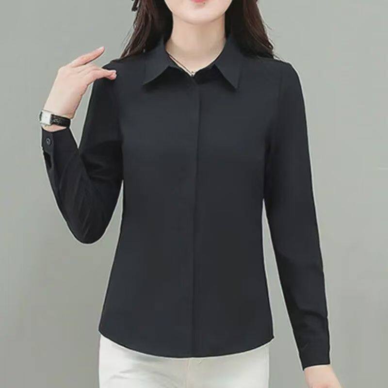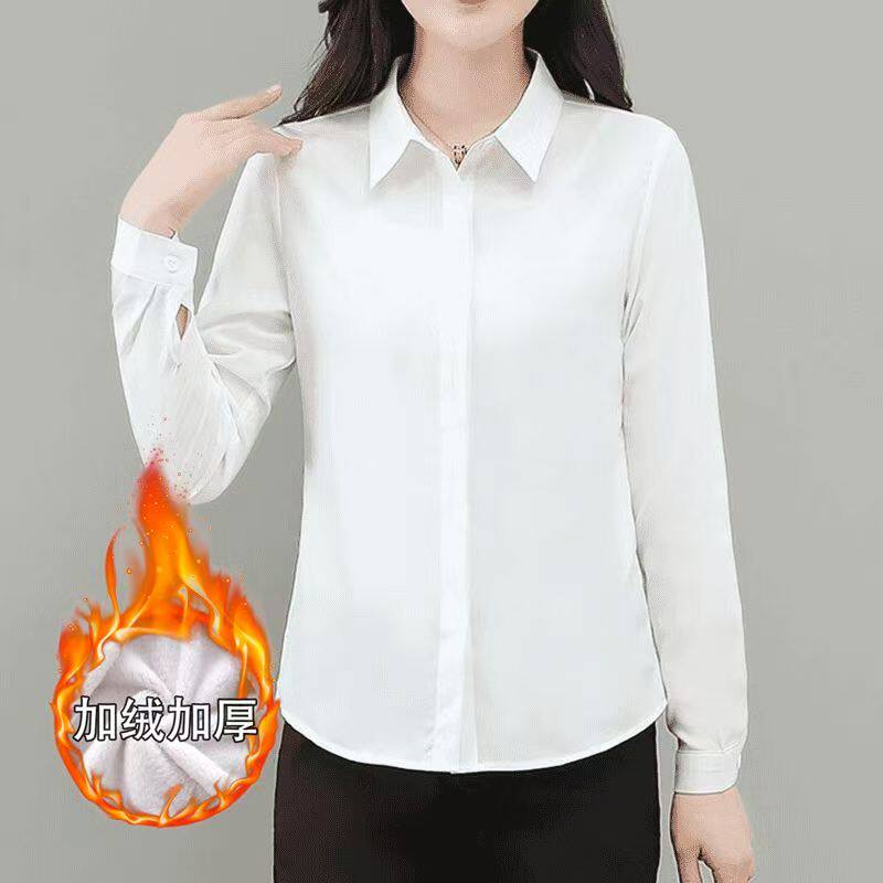 气质修身 女士打底长袖 显瘦百搭衬衣工作服 加绒加厚黑色衬衫 秋冬季