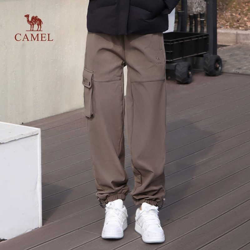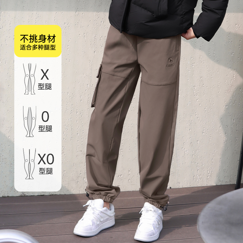防泼水 休闲裤 骆驼运动工装 女秋冬季 户外加绒直筒徒步登山裤 裤