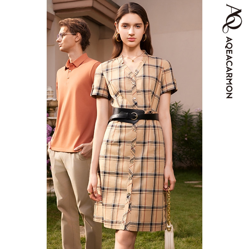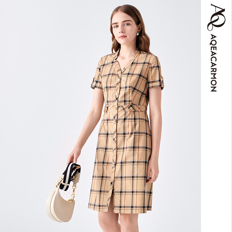休闲百搭显瘦格子连衣裙 女士时尚 A24CF69J2E 春夏新款 雅格上美
