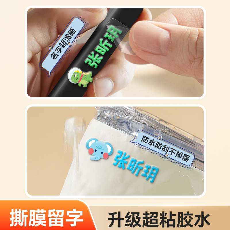 3D水晶姓名贴撕膜留字儿童名字贴防水防撕幼儿园入学必备用品学生