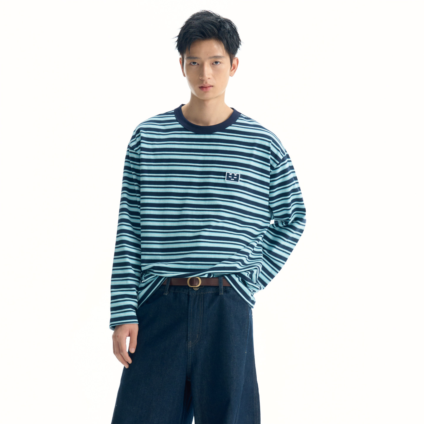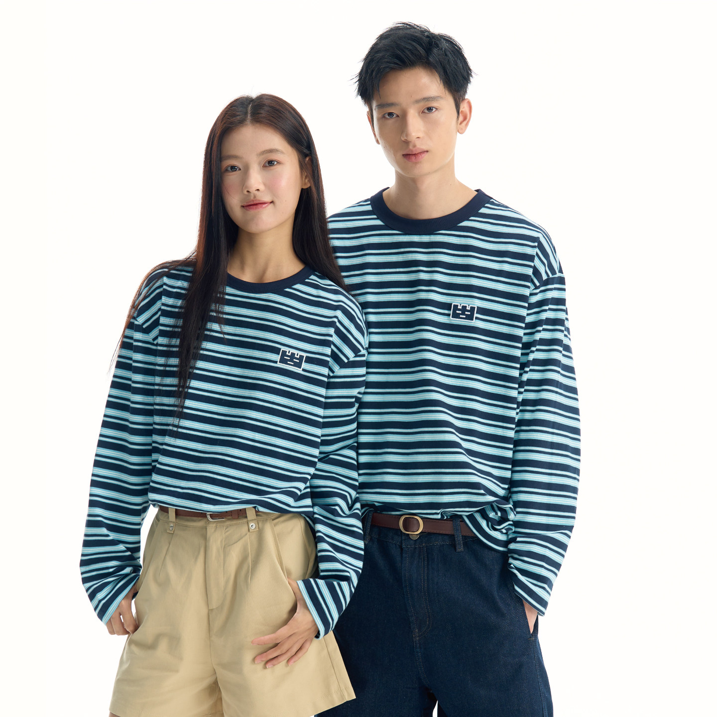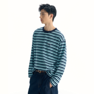 上衣 T恤男女刺绣打底衫 TGWALL「美好邮件」春季 撞色条纹情侣长袖