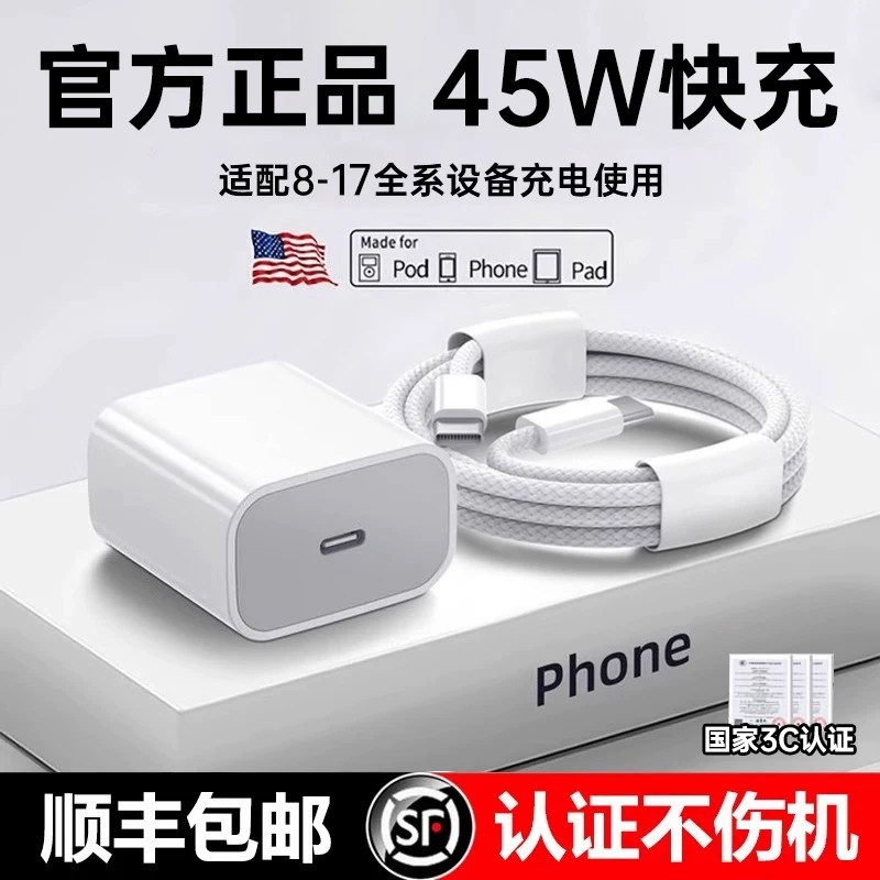 16充电器线iPhone16promax手机15pro插头13快充40w数据线14原正ipad品pd套装 45WFIVI官方适用苹果17 顺丰