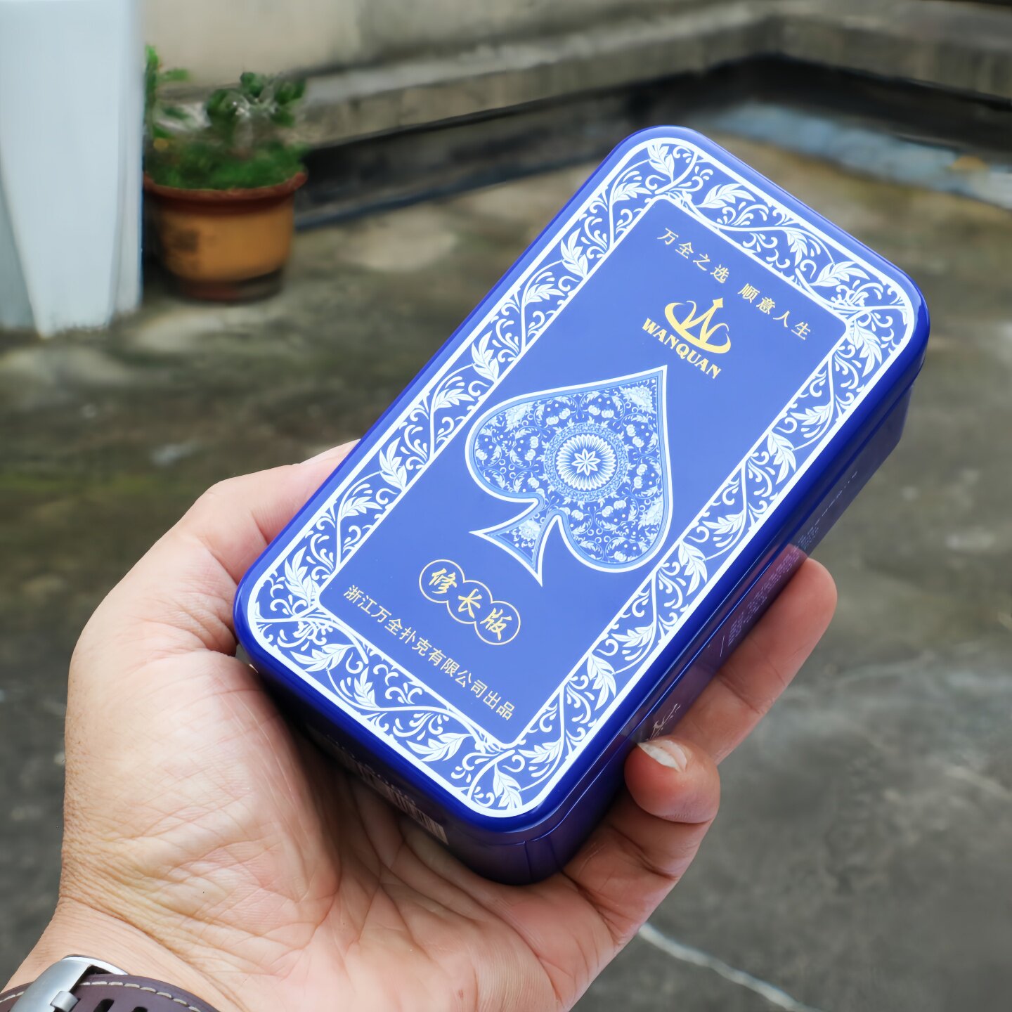 万全青花瓷掼蛋记分铁盒掼蛋专用扑克细长版 塑料PVC防水窄牌窄版