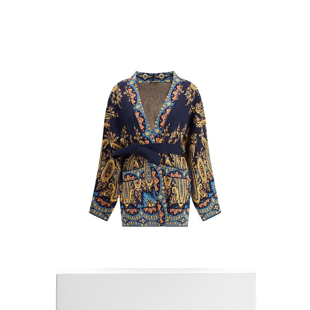 亿万少年BUFU原创美式 弗尔岛小狗毛衣女 复古毛领提花连帽针织开衫