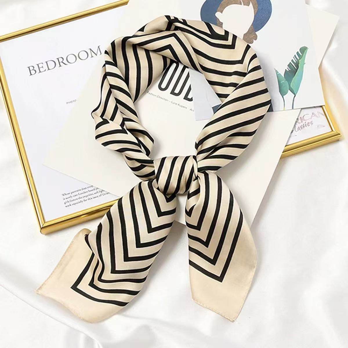 千金感气质复古条纹丝巾女2025款 围脖系脖领巾 秋冬搭配小方巾衬衫