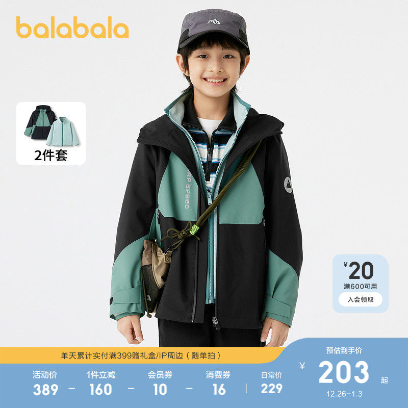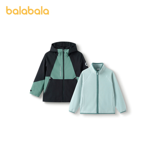巴拉巴拉冲锋衣童装 防风防水透湿摇粒绒内件 男童两件套外套春秋装