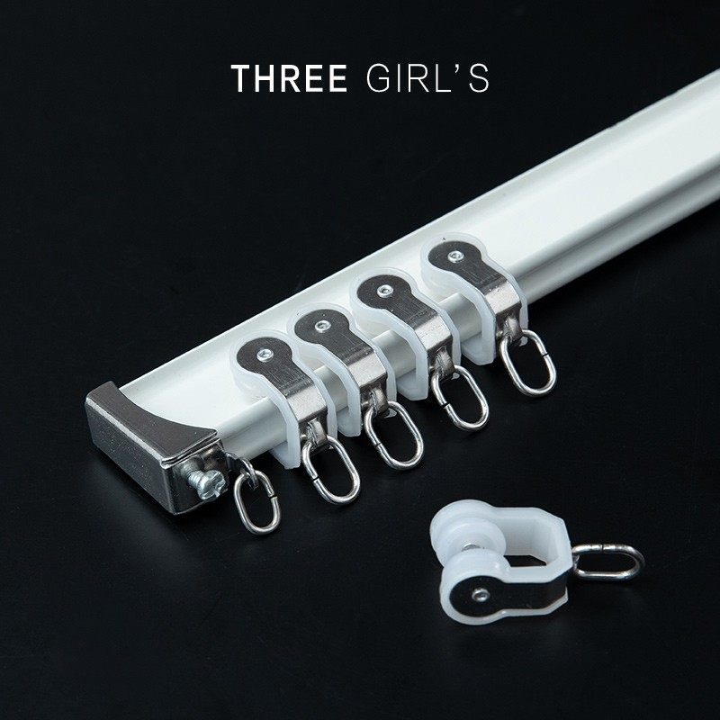加厚铝合金飘窗窗帘静音弯轨U型L型单双轨道可弯曲滑轨滑轮顶侧装