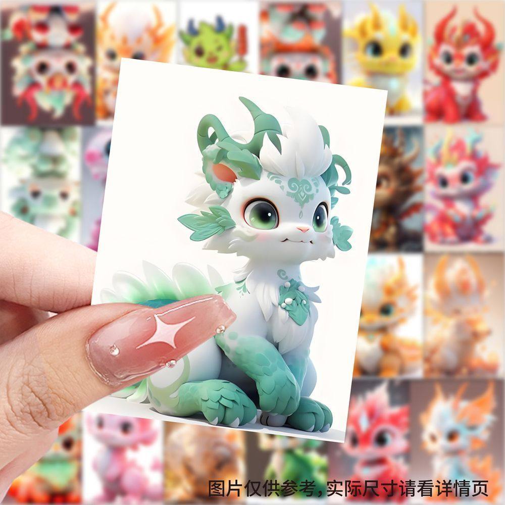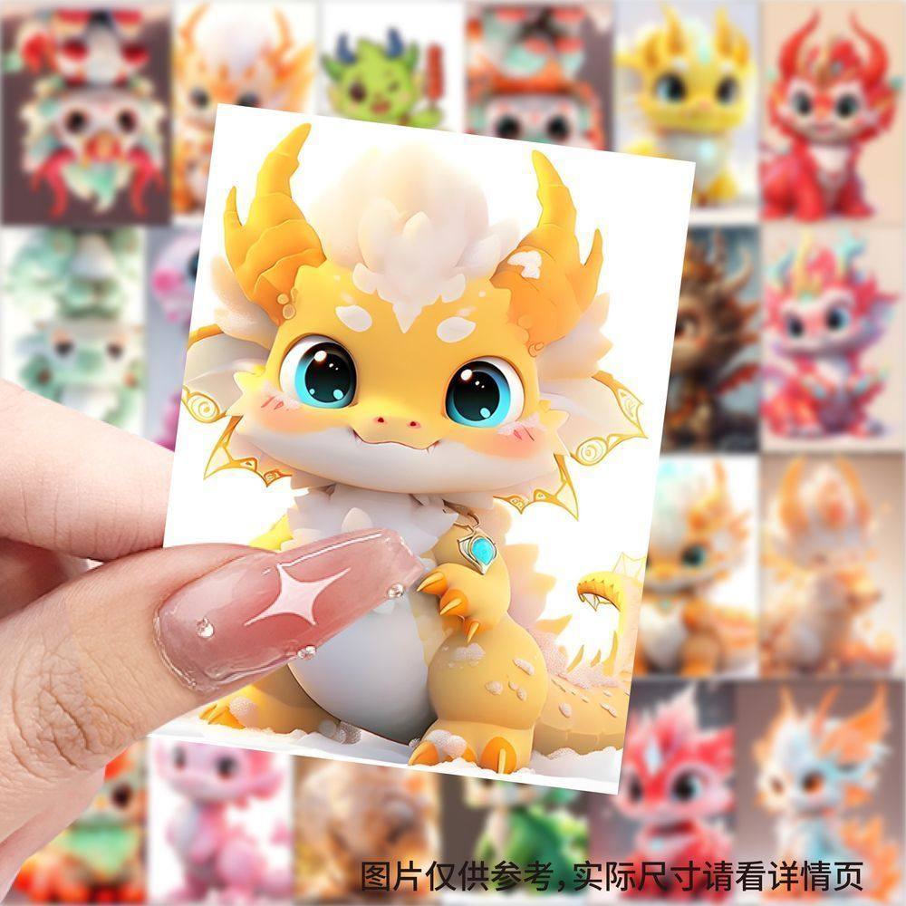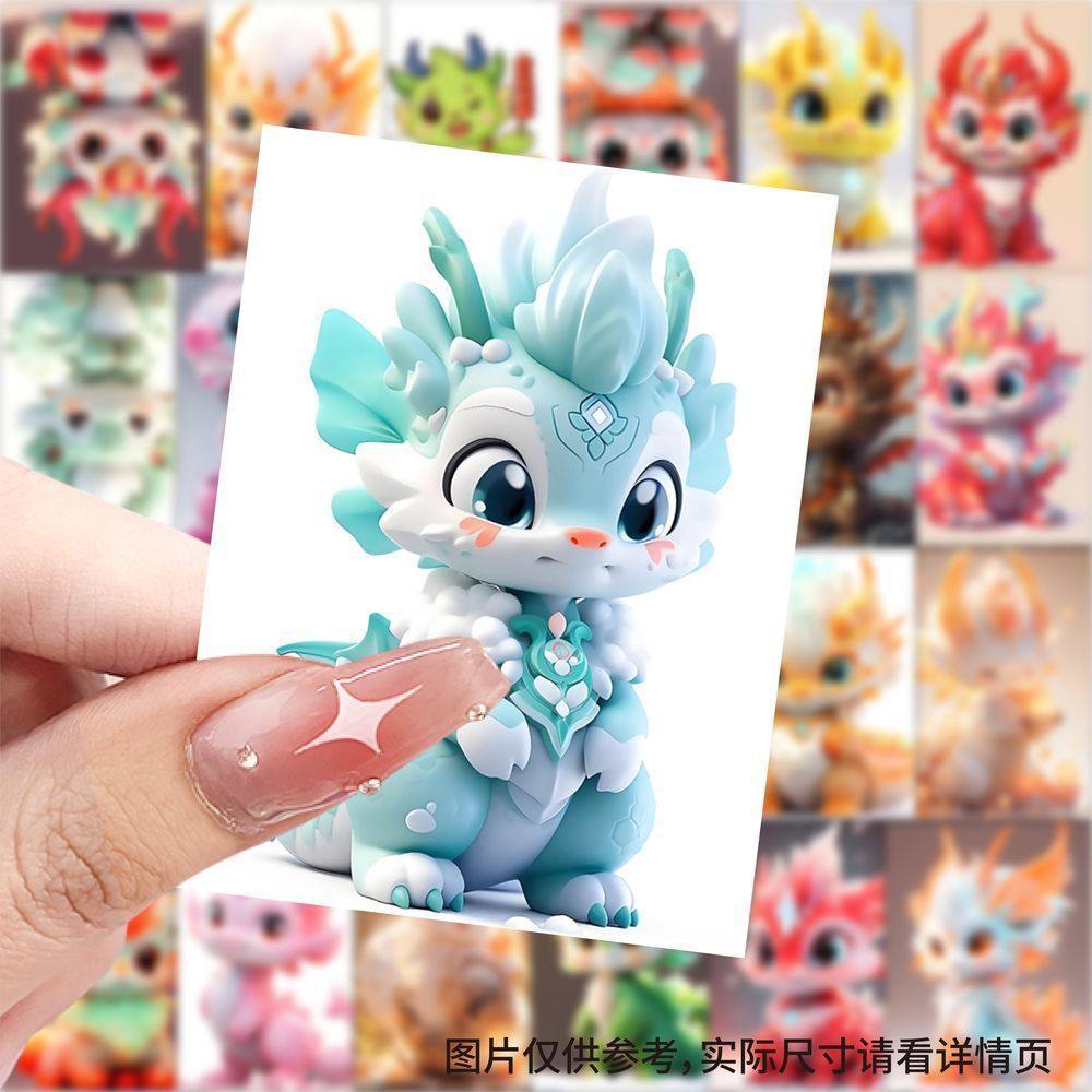 迷你龙贴纸卡通儿童女孩diy自粘标签行李箱手机手账素材装 126张Q版 饰贴画防水立体标签贴 大图释官方授权