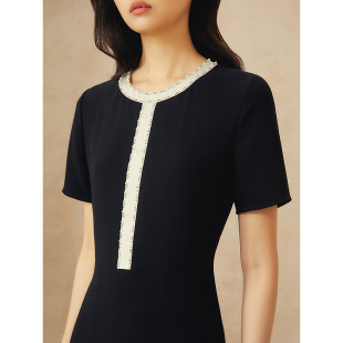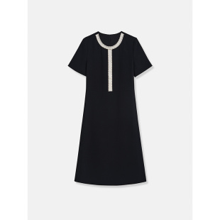 新款 YINER音儿专选2025夏季 钉珠撞色醋酸小A字连衣裙 雅致黑裙