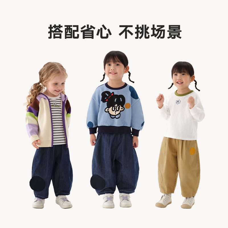 女童小童趣味波点印花牛仔长裤 马拉丁童装 新款 子2024秋装 儿童裤