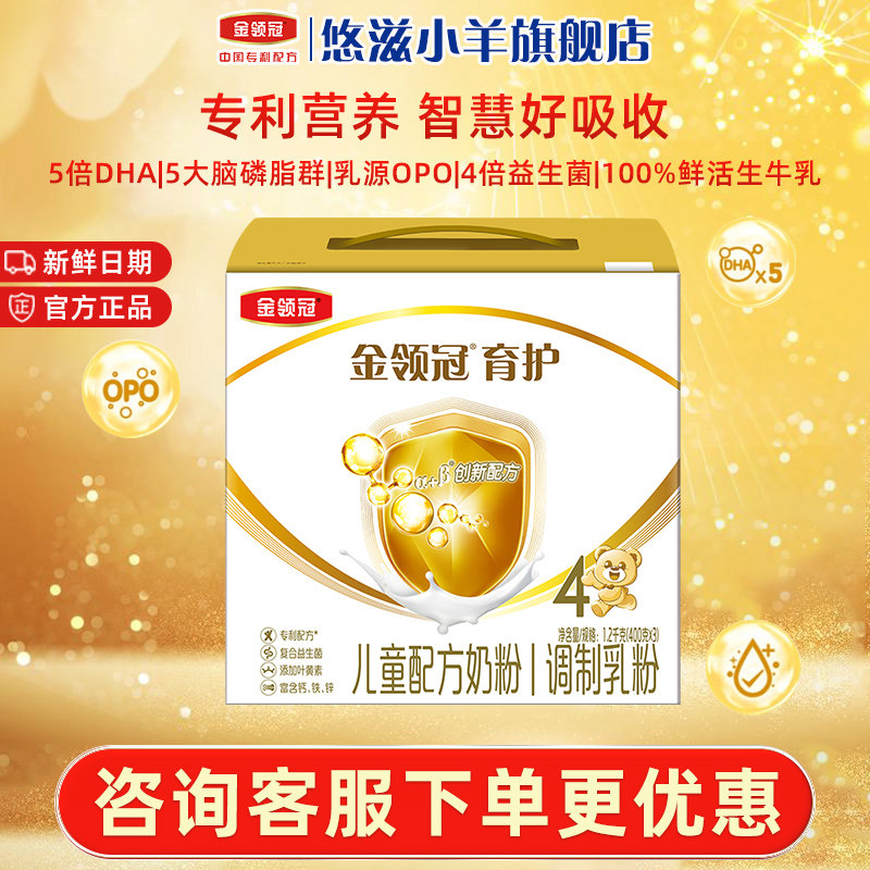 伊利金领冠育护4段奶粉3 1盒 6岁DHA儿童成长配方牛奶粉1200g