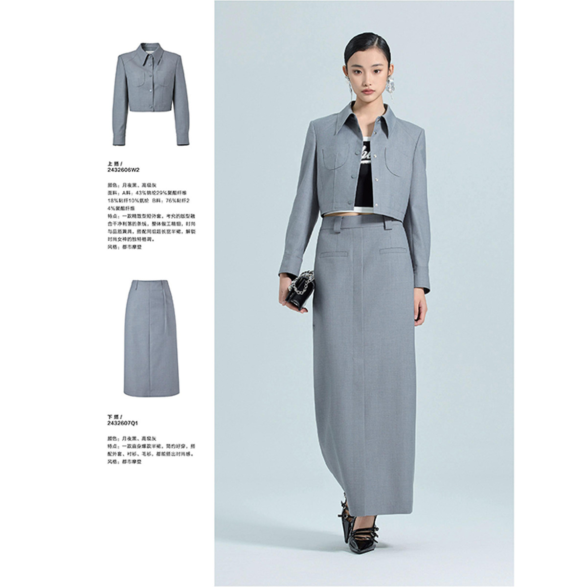 栖 高腰半裙通勤气质套装 春装 外套 606 含粘纤短款 西湖阁老