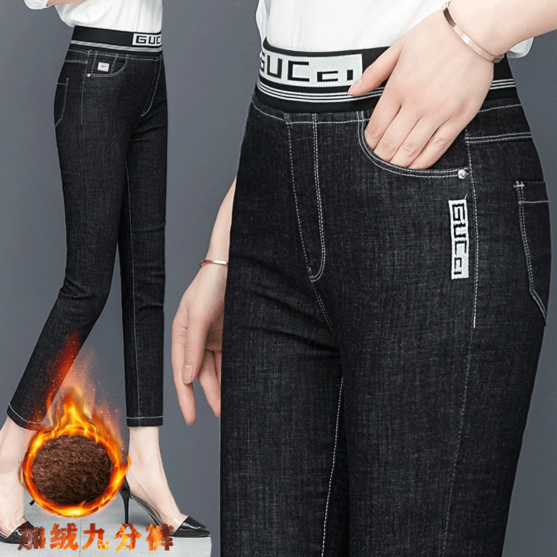 显瘦小个子小脚裤 2025九分单裤 高腰弹力修身 女秋冬新款 加绒牛仔裤