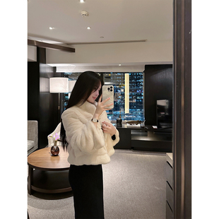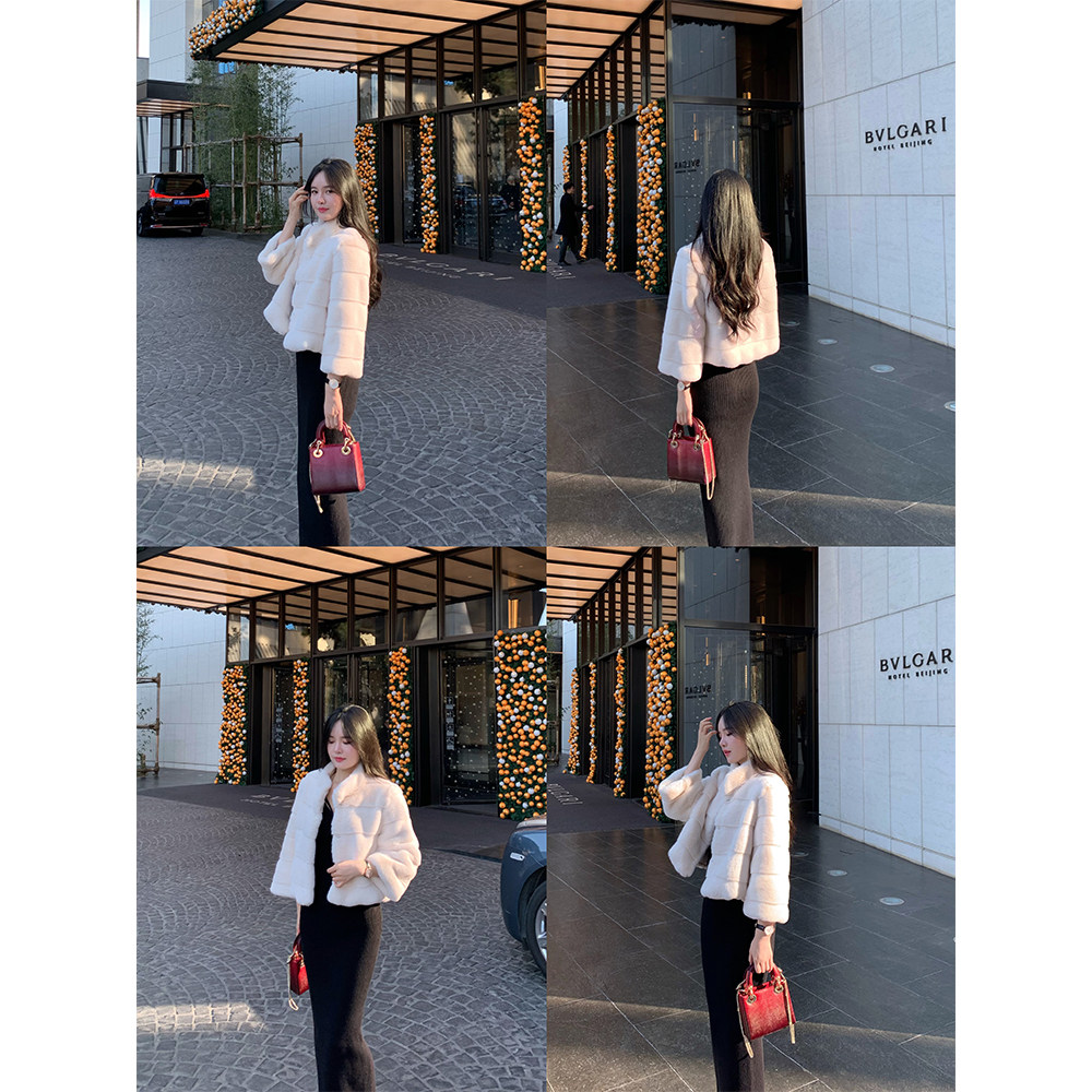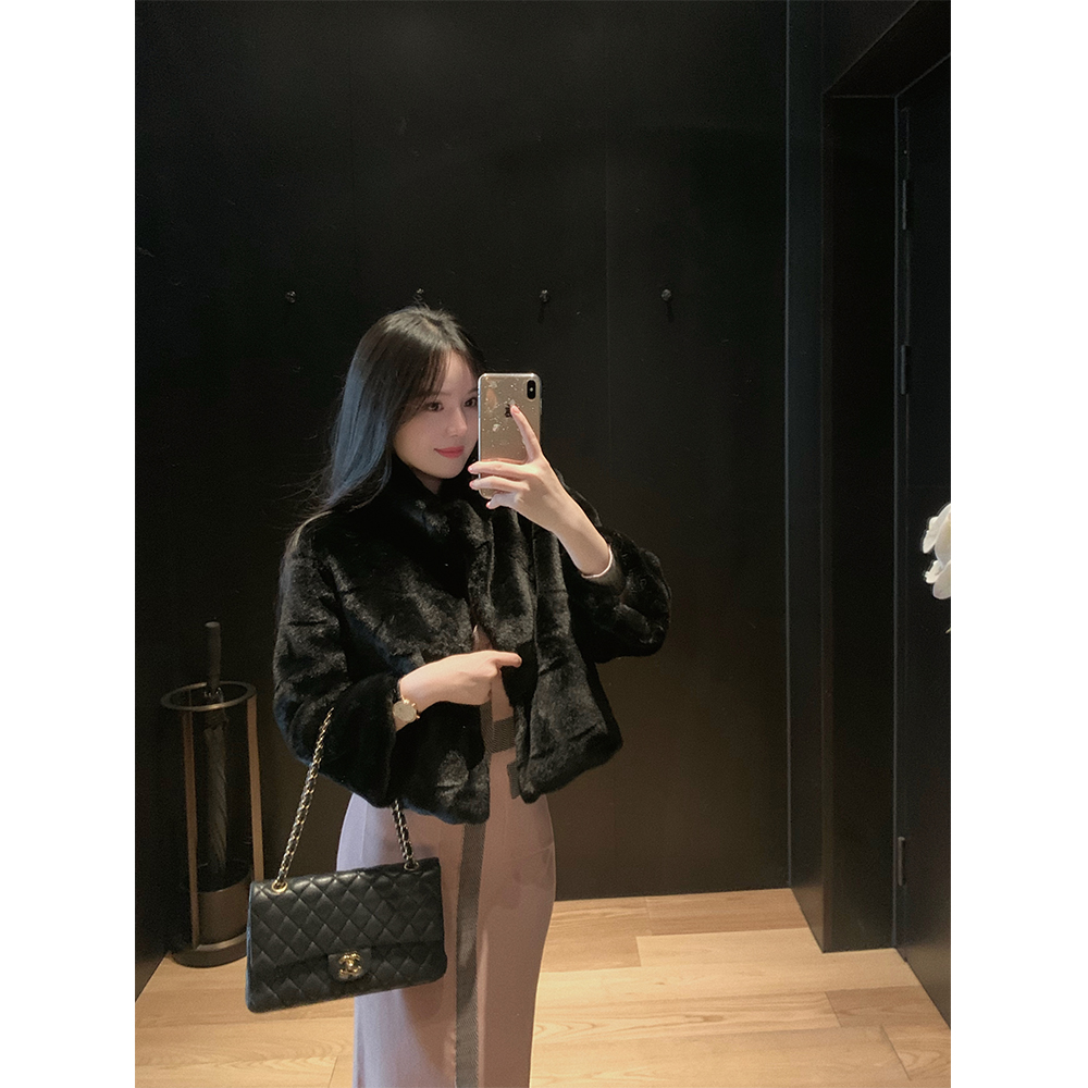 日常基础七分袖 THE 韩版 精致姐姐 仿水貂皮草短外套 SWAN司凰轻奢