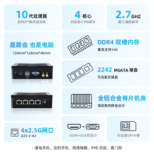 四核J4125软路由4网口2.5G i225爱快X86微型迷你电脑主机openwtr