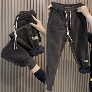 高腰宽松休闲运动裤 冬季 女百搭显瘦束脚哈伦裤 加绒加厚卫裤 新款