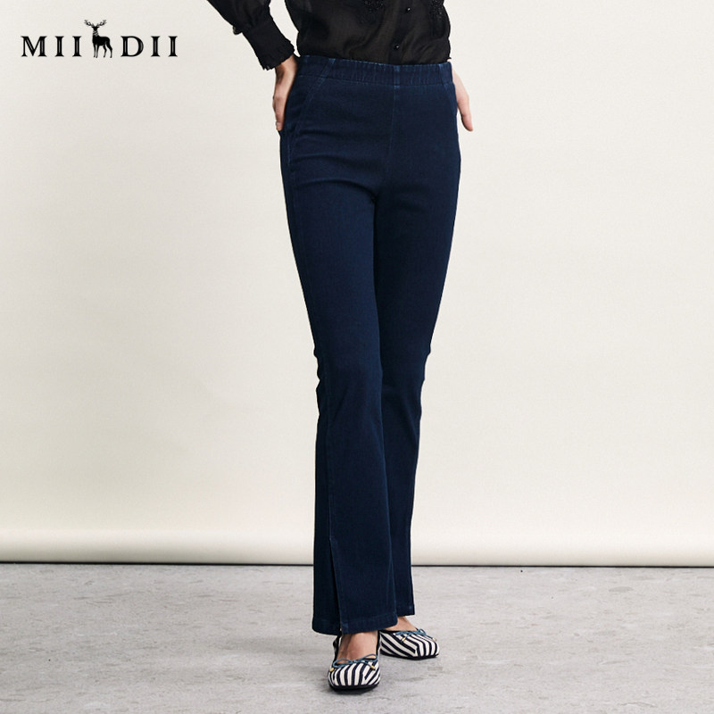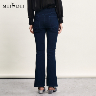 241MK0005 复古高腰百搭牛仔喇叭裤 谜底紧身微喇长裤 女春新款