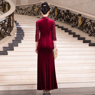 连衣裙复古走秀迎宾 年会晚礼服改良版 旗袍年轻款 丝绒2023气质长款