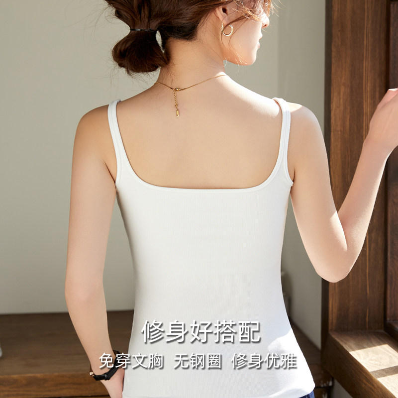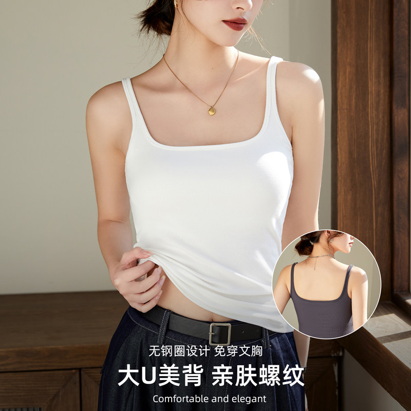 吊带背心女带胸垫文胸bra一体内搭外穿U型领春夏季 打底美背上衣女
