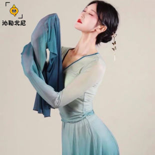 练功服春秋现代舞新款 上衣女古典中国舞形体舞蹈服 不规则下摆长袖