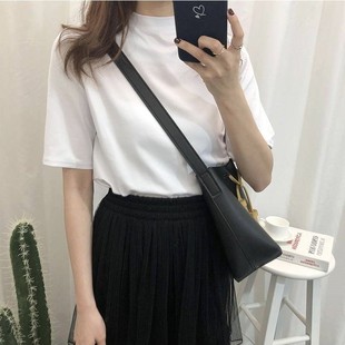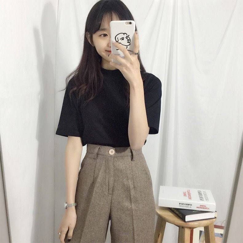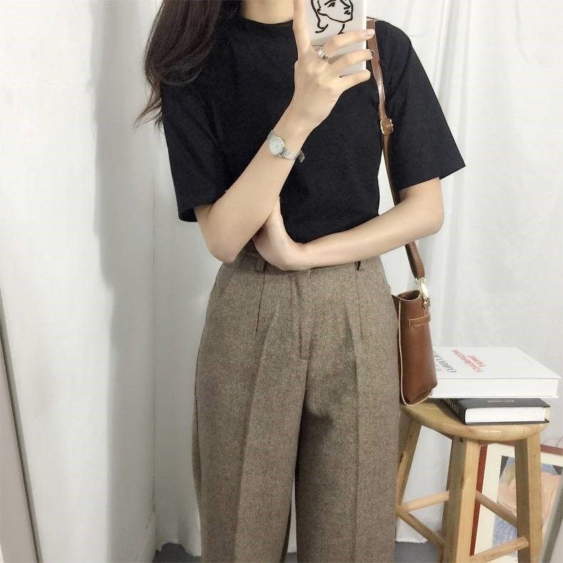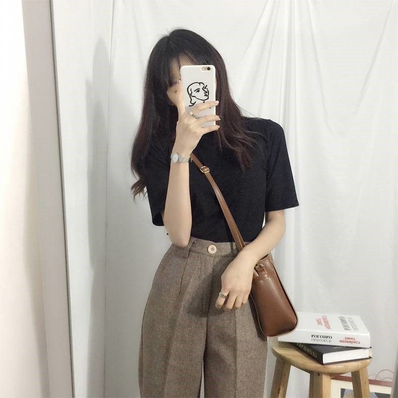 宽松显瘦纯色五分半袖 小高领短袖 韩版 夏装 黑色上衣 t恤女2020新款