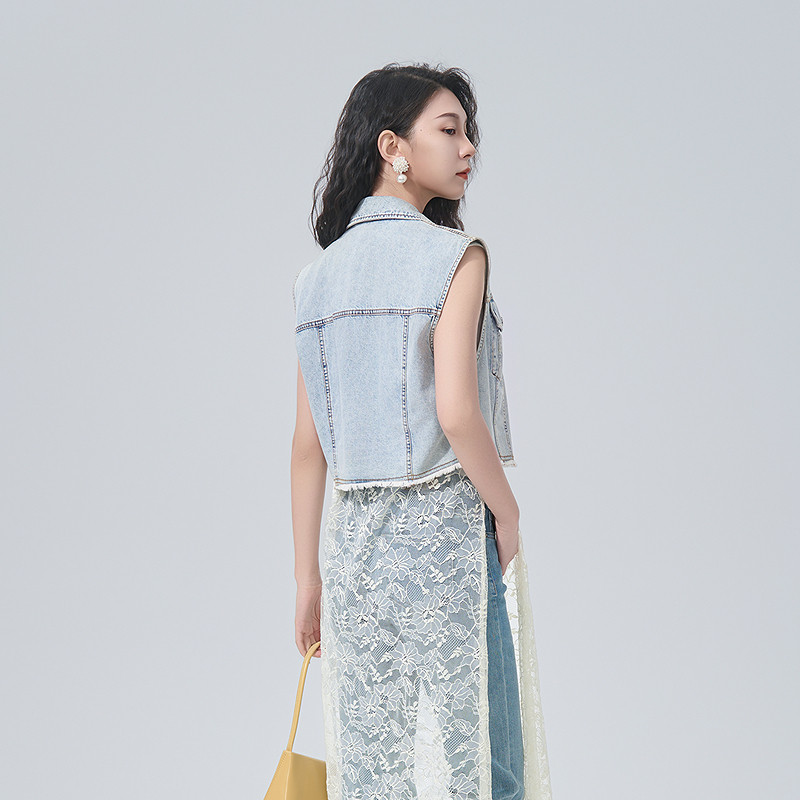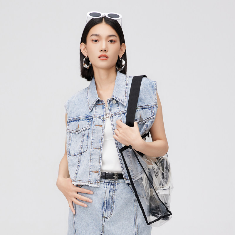 无袖 牛仔马甲外套女短款 曼诺比菲夏季 上衣 商场同款