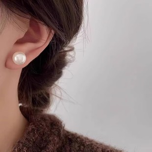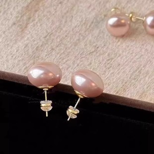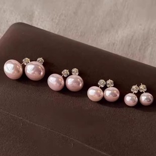 小众耳饰品 轻奢气质耳环2025新款 高级感馒头粉光珍珠耳钉女款 时尚