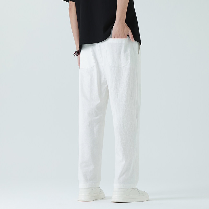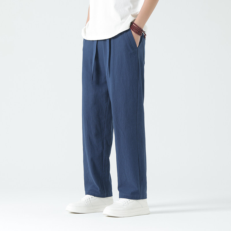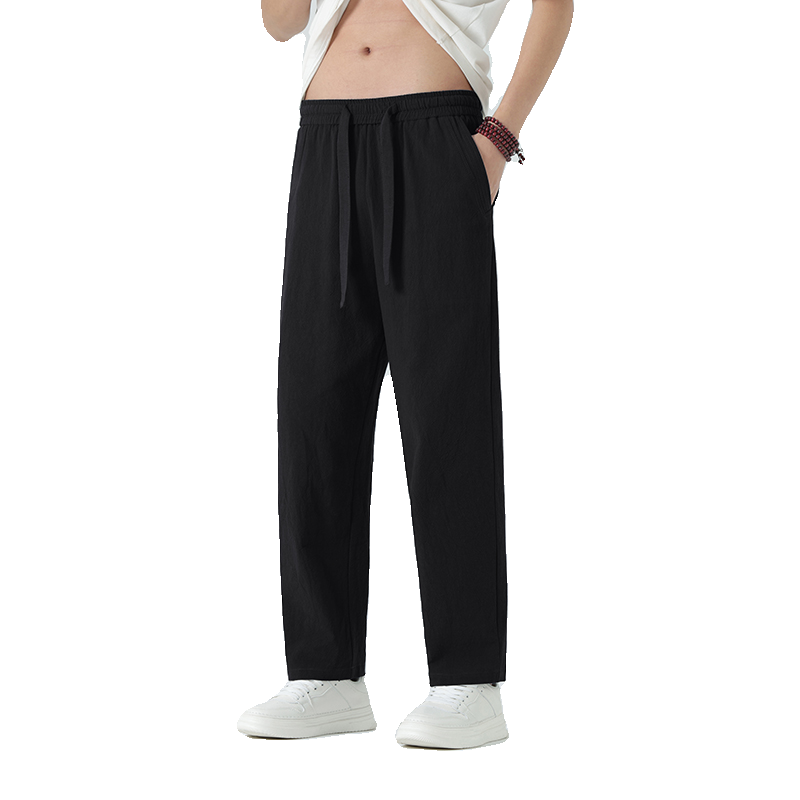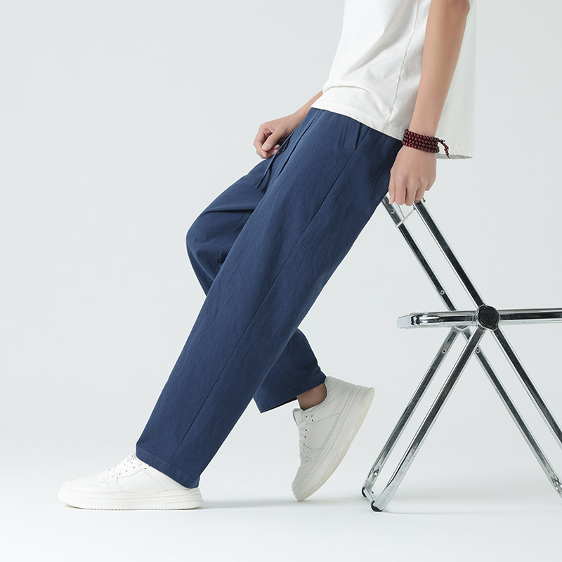 中国风亚麻休闲裤 直筒运动裤 男大码 青年男薄款 宽松棉麻阔腿裤 夏季