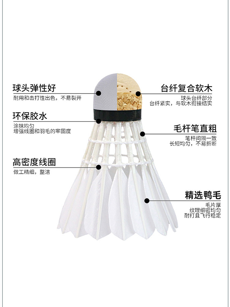 ACC羽毛球俱乐部5号鹅毛全园比赛用球训练习耐打王76速77速12只装