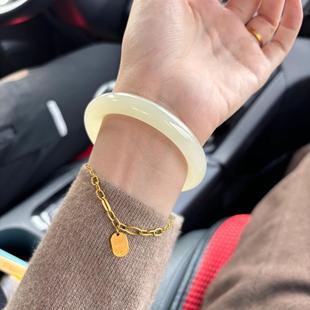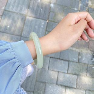 珠宝玉石 和田玉晴水镯子正品 天然新疆青白玉手镯女款 圆条细款