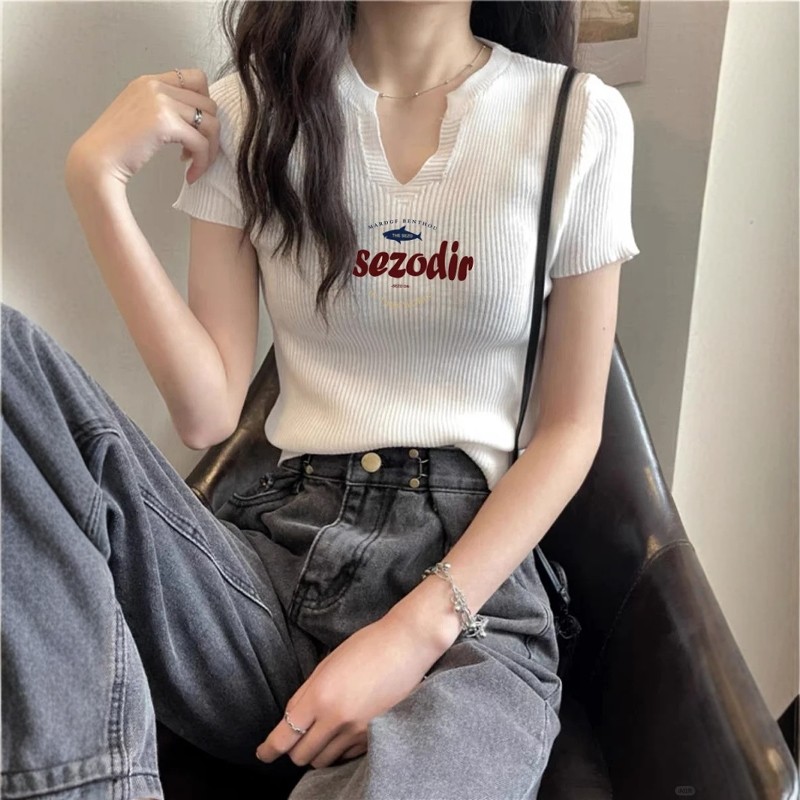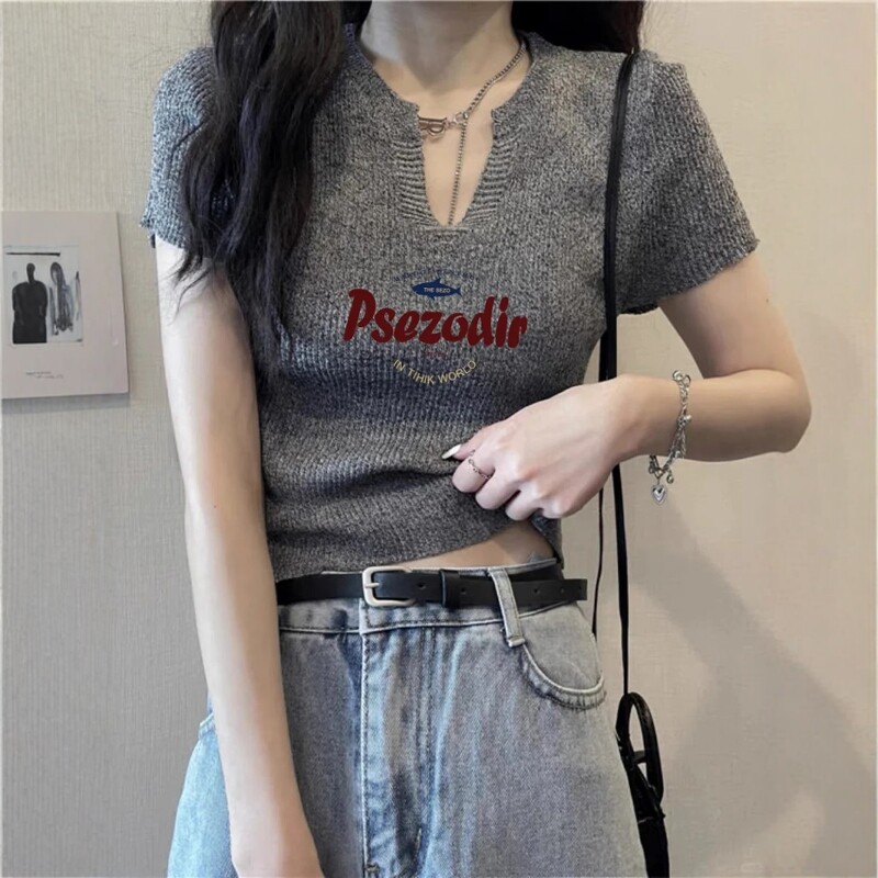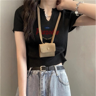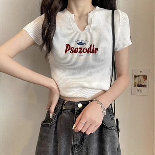 修身 2026新款 显瘦百搭超好看设计感v领冰丝上衣 t恤女夏季 针织短袖