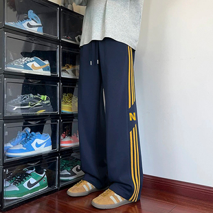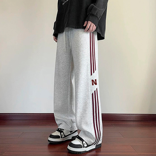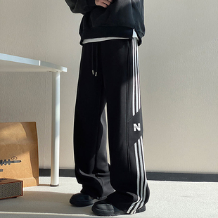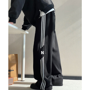 直筒条纹长裤 裤 运动港风阔腿宽松加绒休闲裤 2025新款 潮 子男秋冬季