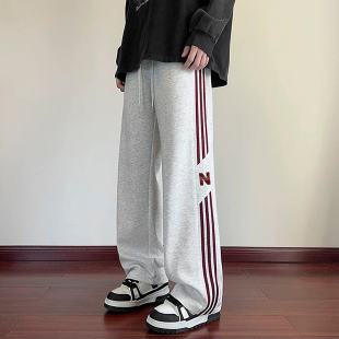 运动阔腿宽松休闲裤 2026新款 大码 直筒美式 潮 裤 条纹长裤 子男春秋季