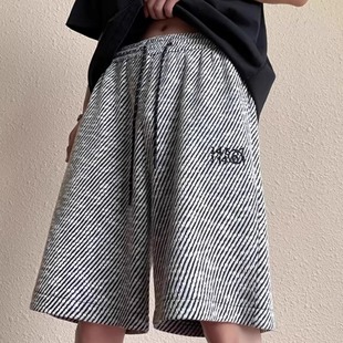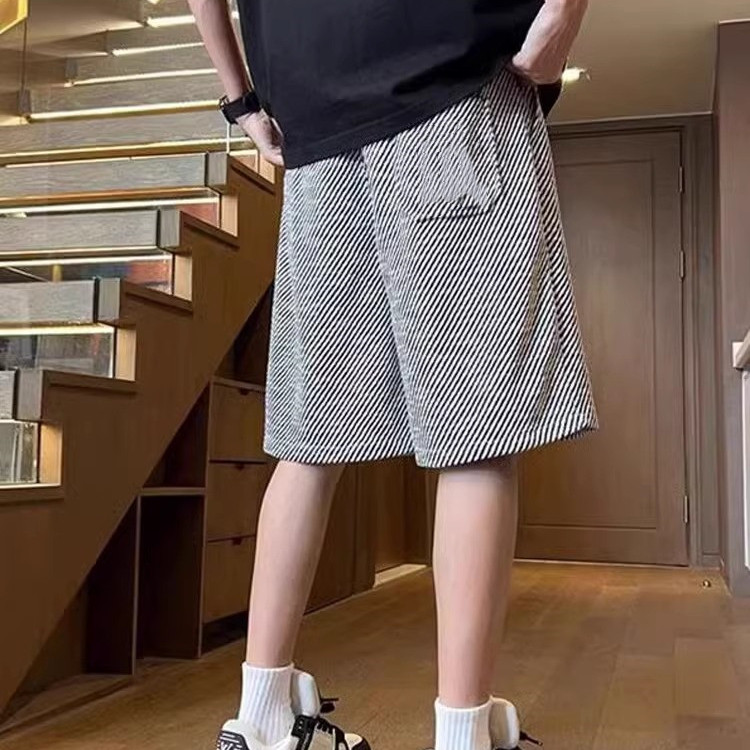 沙滩短裤 条纹高级感五分裤 薄款 夏装 衩子 男休闲潮牌潮流痞帅直筒裤