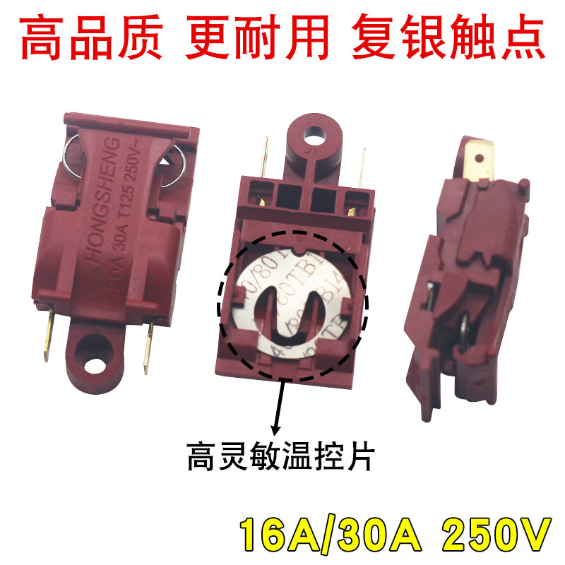 电热水壶开关配件16A30A大功率电水壶蒸汽温控铜插脚自动断电开关